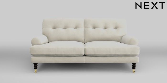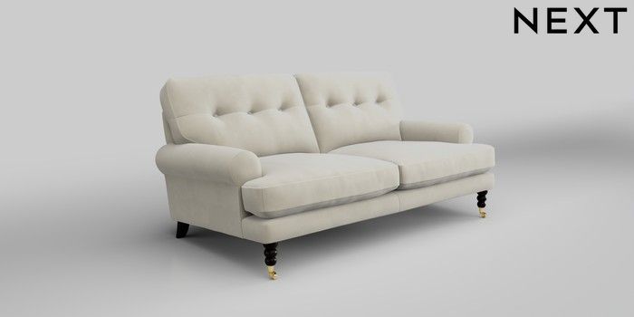 7.0.3 Buy Erin Buttoned Back Deep Relaxed Sit 3 Seater Small Sofa Luxe Chenille Oyster High Classic Turned Brass Castor - Dark from the Next UK online shop Click here to use our accessible website