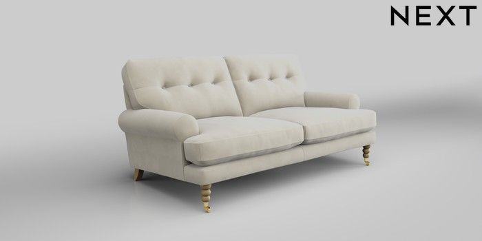 7.0.3 Buy Erin Buttoned Back Deep Relaxed Sit 3 Seater Small Sofa Luxe Chenille Oyster High Classic Turned Brass Castor - Light from the Next UK online shop Click here to use our accessible website