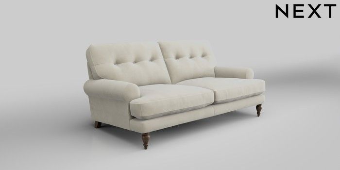 7.0.3 Buy Erin Buttoned Back Deep Relaxed Sit 3 Seater Small Sofa Luxe Chenille Oyster High Classic Turned - Mid from the Next UK online shop Click here to use our accessible website