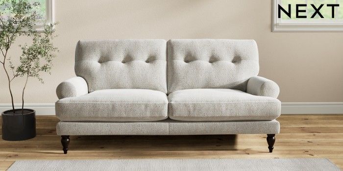 7.2.6 Buy Erin Buttoned Back Deep Relaxed Sit 3 Seater Small Sofa Multi Weave Light Blue High Classic Turned - Dark from the Next UK online shop Click here to use our accessible website
