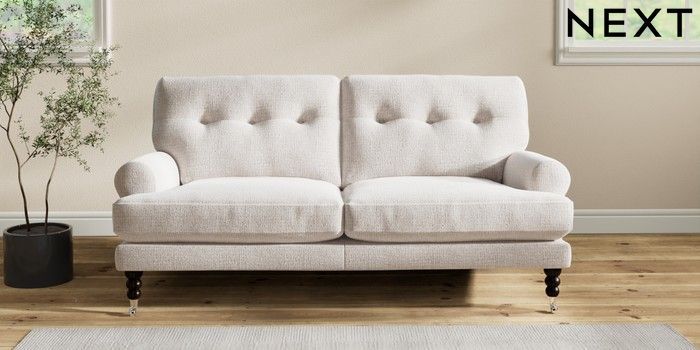 7.2.6 Buy Erin Buttoned Back Deep Relaxed Sit 3 Seater Small Sofa Multi Weave Oyster High Classic Turned Chrome Castor - Dark from the Next UK online shop Click here to use our accessible website