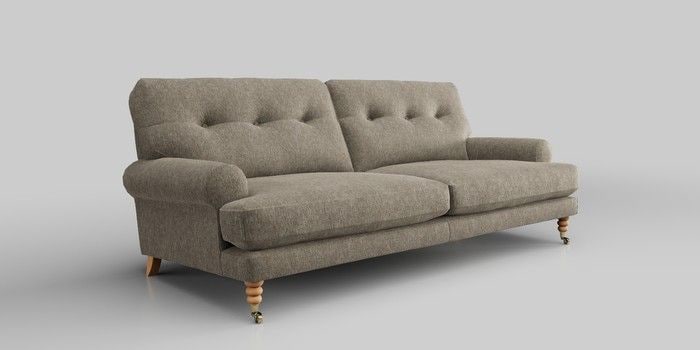 6.12.1 Buy Erin Buttoned Back Deep Relaxed Sit 3 Seater Sofa Cotswold Chenille Mid Mink Brown High Classic Turned Brass Castor - Light from the Next UK online shop Click here to use our accessible website