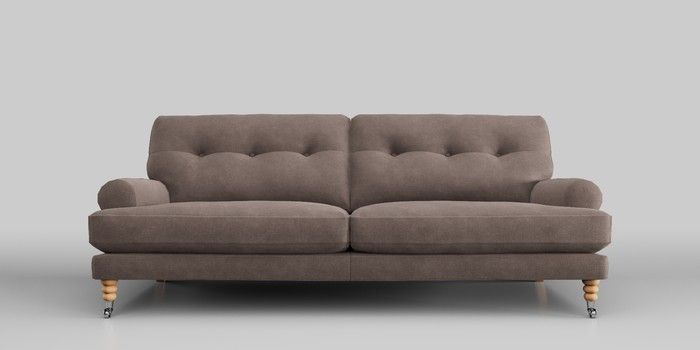 6.12.1 Buy Erin Buttoned Back Deep Relaxed Sit 3 Seater Sofa Luxe Chenille Mink Brown High Classic Turned Chrome Castor - Light from the Next UK online shop Click here to use our accessible website
