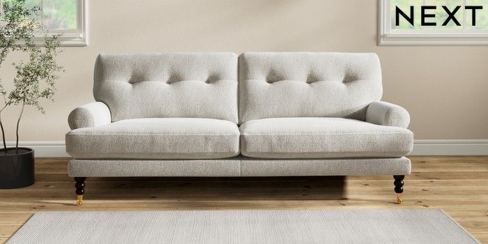 Add charm to your living space with the Erin Button Back Sofa. Its elegant scroll arms and classic button-back cushions create a timeless look. You'll love its "Relaxed Sit" cushions, specially designed for ultimate comfort. These cushions are made with clever foam and fibre, giving you a wonderfully soft, plump feel. To keep them looking their best, simply plump and turn them regularly. Plus, you can make the Erin your own by choosing from a huge range of coloured fabrics.
