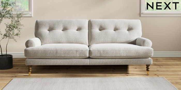 7.2.6 Buy Erin Buttoned Back Deep Relaxed Sit 3 Seater Sofa Multi Weave Light Blue High Classic Turned Brass Castor - Mid from the Next UK online shop Click here to use our accessible website