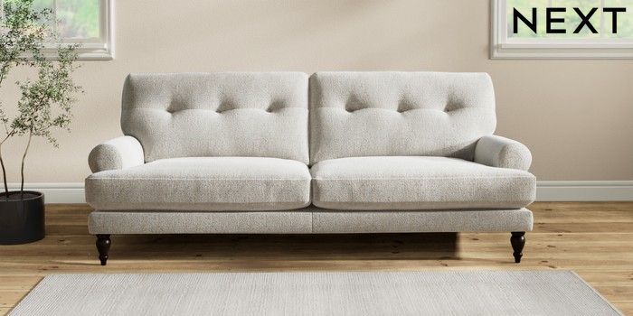 7.2.6 Buy Erin Buttoned Back Deep Relaxed Sit 3 Seater Sofa Multi Weave Light Blue High Classic Turned - Dark from the Next UK online shop Click here to use our accessible website