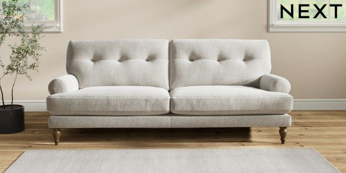 7.2.6 Buy Erin Buttoned Back Deep Relaxed Sit 3 Seater Sofa Multi Weave Light Blue High Classic Turned - Mid from the Next UK online shop Click here to use our accessible website