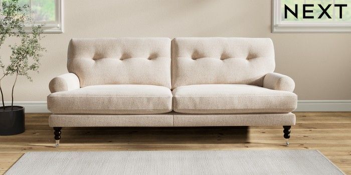 7.2.6 Buy Erin Buttoned Back Deep Relaxed Sit 3 Seater Sofa Multi Weave Mid Natural High Classic Turned Chrome Castor - Dark from the Next UK online shop Click here to use our accessible website
