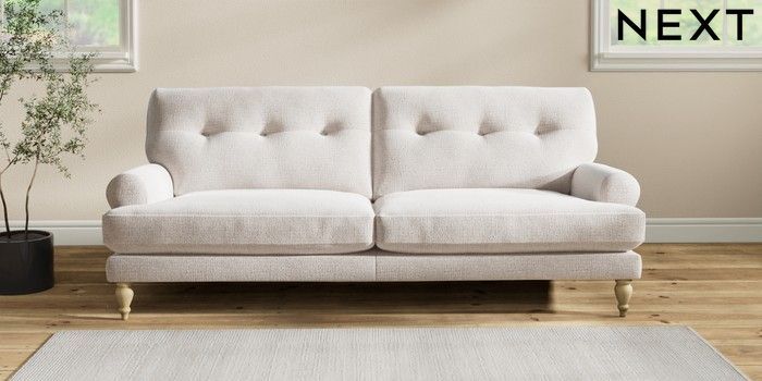 7.2.6 Buy Erin Buttoned Back Deep Relaxed Sit 3 Seater Sofa Multi Weave Oyster High Classic Turned - Light from the Next UK online shop Click here to use our accessible website