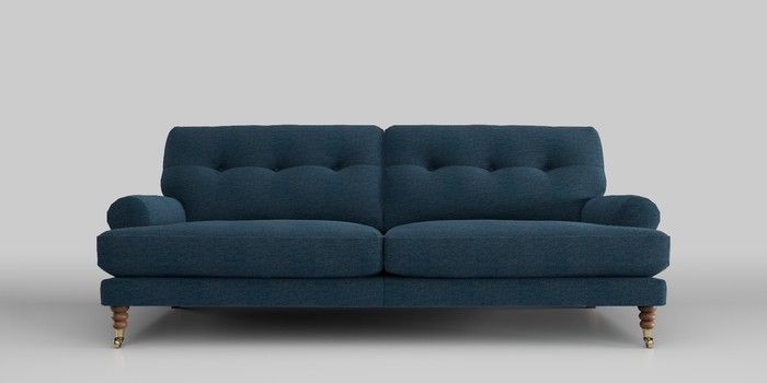 7.0.3 Buy Erin Buttoned Back Deep Relaxed Sit 3 Seater Sofa Ripple Chenille Dark Blue High Classic Turned Brass Castor - Mid from the Next UK online shop Click here to use our accessible website