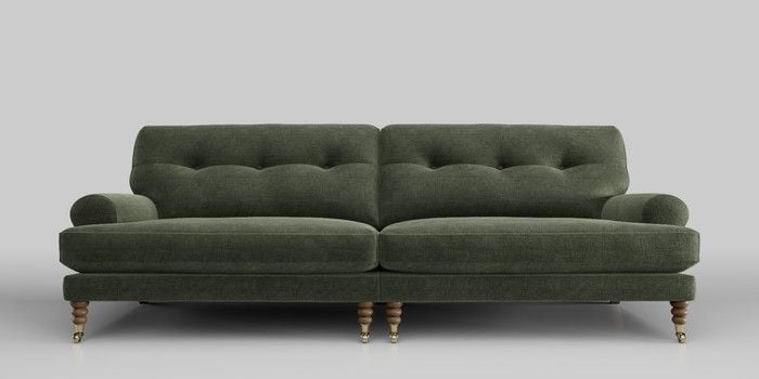7.0.3 Buy Erin Buttoned Back Deep Relaxed Sit 4 Seater Large Sofa Luxe Chenille Mid Green High Classic Turned Brass Castor - Dark from the Next UK online shop Click here to use our accessible website