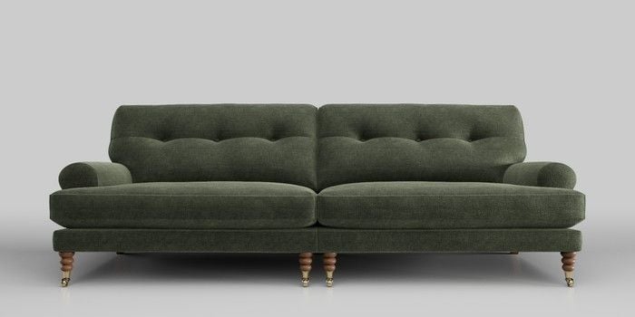 7.0.3 Buy Erin Buttoned Back Deep Relaxed Sit 4 Seater Large Sofa Luxe Chenille Mid Green High Classic Turned Brass Castor - Mid from the Next UK online shop Click here to use our accessible website