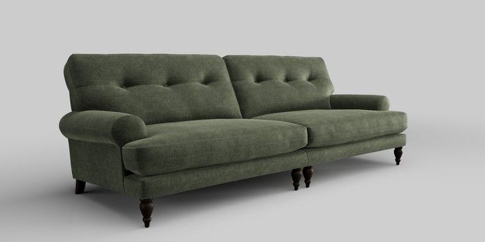 6.12.1 Buy Erin Buttoned Back Deep Relaxed Sit 4 Seater Large Sofa Luxe Chenille Mid Green High Classic Turned - Dark from the Next UK online shop Click here to use our accessible website