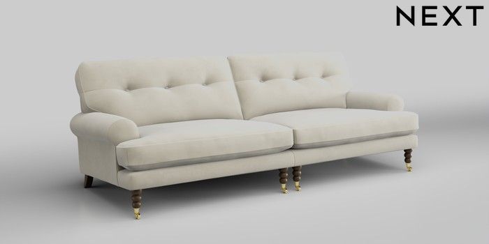 7.0.3 Buy Erin Buttoned Back Deep Relaxed Sit 4 Seater Large Sofa Luxe Chenille Oyster High Classic Turned Brass Castor - Mid from the Next UK online shop Click here to use our accessible website