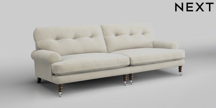 Add charm to your living space with the Erin Button Back Sofa. Its elegant scroll arms and classic button-back cushions create a timeless look. You'll love its "Relaxed Sit" cushions, specially designed for ultimate comfort. These cushions are made with clever foam and fibre, giving you a wonderfully soft, plump feel. To keep them looking their best, simply plump and turn them regularly. Plus, you can make the Erin your own by choosing from a huge range of coloured fabrics.
