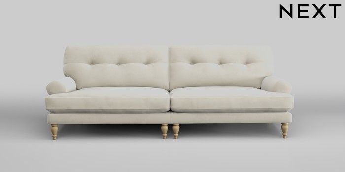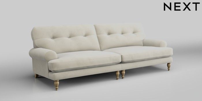 7.0.3 Buy Erin Buttoned Back Deep Relaxed Sit 4 Seater Large Sofa Luxe Chenille Oyster High Classic Turned - Light from the Next UK online shop Click here to use our accessible website