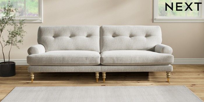 7.2.6 Buy Erin Buttoned Back Deep Relaxed Sit 4 Seater Large Sofa Multi Weave Light Blue High Classic Turned Brass Castor - Light from the Next UK online shop Click here to use our accessible website