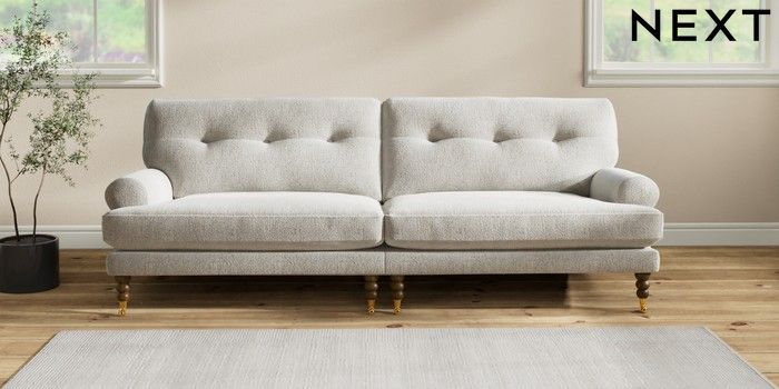 7.2.6 Buy Erin Buttoned Back Deep Relaxed Sit 4 Seater Large Sofa Multi Weave Light Blue High Classic Turned Brass Castor - Mid from the Next UK online shop Click here to use our accessible website