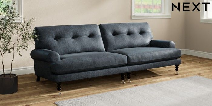 7.3.1 Buy Erin Buttoned Back Deep Relaxed Sit 4 Seater Large Sofa Plush Chenille Slate Blue High Classic Turned Chrome Castor - Dark from the Next UK online shop