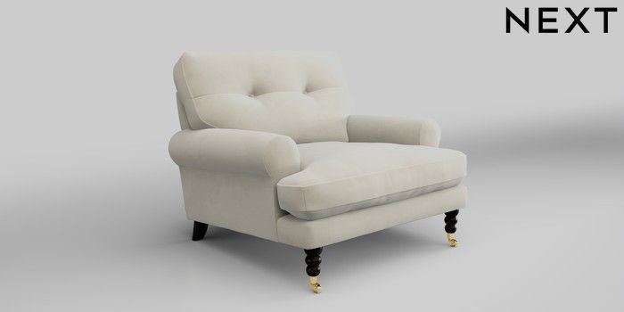 7.0.3 Buy Erin Buttoned Back Deep Relaxed Sit Armchair Luxe Chenille Oyster High Classic Turned Brass Castor - Dark from the Next UK online shop Click here to use our accessible website