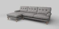 6.12.1 Buy Erin Buttoned Back Deep Relaxed Sit 3 Seater Small Sofa Chunky Boucle Easy Clean Light Grey High Classic Turned Brass Castor - Light from the Next UK online shop Click here to use our accessible website