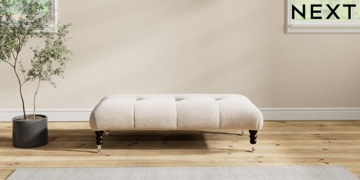 7.2.6 Buy Erin Buttoned Back Deep Relaxed Sit Extra Large Footstool Multi Weave Mid Natural High Classic Turned Chrome Castor - Dark from the Next UK online shop Click here to use our accessible website