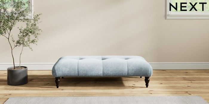 7.2.6 Buy Erin Buttoned Back Deep Relaxed Sit Extra Large Footstool Plush Chenille Light Blue High Classic Turned - Dark from the Next UK online shop Click here to use our accessible website