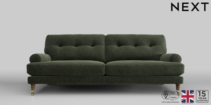 Add charm to your living space with the Erin Button Back Sofa. Its elegant scroll arms and classic button-back cushions create a timeless look. You'll love its "Relaxed Sit" cushions, specially designed for ultimate comfort. These cushions are made with clever foam and fibre, giving you a wonderfully soft, plump feel. To keep them looking their best, simply plump and turn them regularly. Plus, you can make the Erin your own by choosing from a huge range of coloured fabrics.