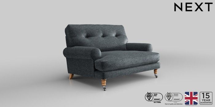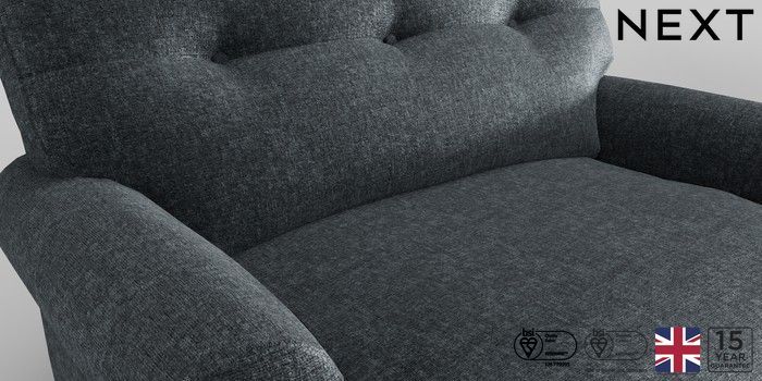 6.12.1 Buy Erin Buttoned Back Deep Relaxed Sit 3 Seater Sofa Plush Chenille Slate Blue High Classic Turned Chrome Castor - Light from the Next UK online shop Click here to use our accessible website