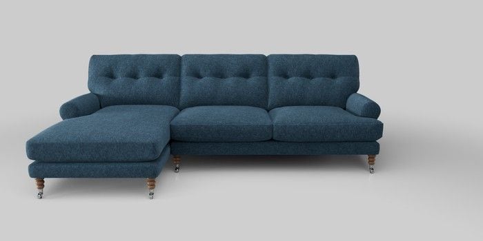 6.12.1 Buy Erin Buttoned Back Deep Relaxed Sit Medium Sofa Chaise - Left Hand Cotswold Chenille Dark Blue High Classic Turned Chrome Castor - Mid from the Next UK online shop Click here to use our accessible website