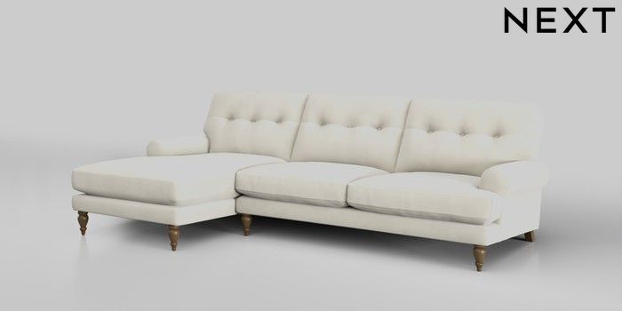 7.0.3 Buy Erin Buttoned Back Deep Relaxed Sit Medium Sofa Chaise - Left Hand Luxe Chenille Oyster High Classic Turned - Mid from the Next UK online shop Click here to use our accessible website