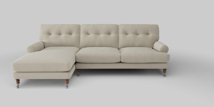 6.12.1 Buy Erin Buttoned Back Deep Relaxed Sit Medium Sofa Chaise - Left Hand Ripple Chenille Light Natural High Classic Turned Chrome Castor - Mid from the Next UK online shop Click here to use our accessible website