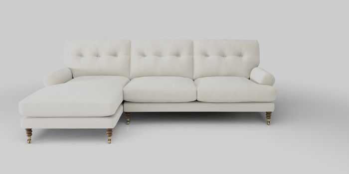 6.12.1 Buy Erin Buttoned Back Deep Relaxed Sit Medium Sofa Chaise - Left Hand Ripple Chenille Oyster High Classic Turned Brass Castor - Dark from the Next UK online shop Click here to use our accessible website