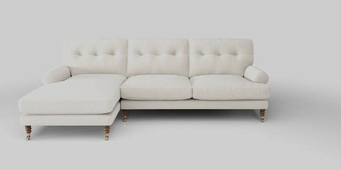 6.12.1 Buy Erin Buttoned Back Deep Relaxed Sit Medium Sofa Chaise - Left Hand Ripple Chenille Oyster High Classic Turned Brass Castor - Mid from the Next UK online shop Click here to use our accessible website