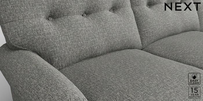 6.12.1 Buy Erin Buttoned Back Deep Relaxed Sit Medium Sofa Chaise - Right Hand Chunky Boucle Easy Clean Mid Grey High Classic Turned Brass Castor - Dark from the Next UK online shop Click here to use our accessible website