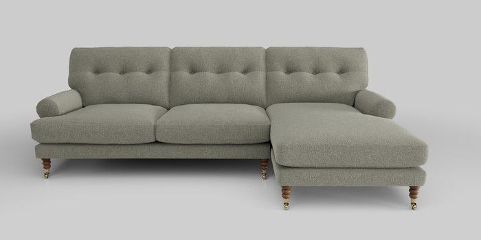 6.12.1 Buy Erin Buttoned Back Deep Relaxed Sit Medium Sofa Chaise - Right Hand Chunky Marl Light Olive Green High Classic Turned Brass Castor - Mid from the Next UK online shop Click here to use our accessible website