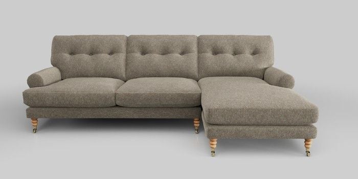 7.0.3 Buy Erin Buttoned Back Deep Relaxed Sit Medium Sofa Chaise - Right Hand Cotswold Chenille Mid Mink Brown High Classic Turned Brass Castor - Light from the Next UK online shop Click here to use our accessible website
