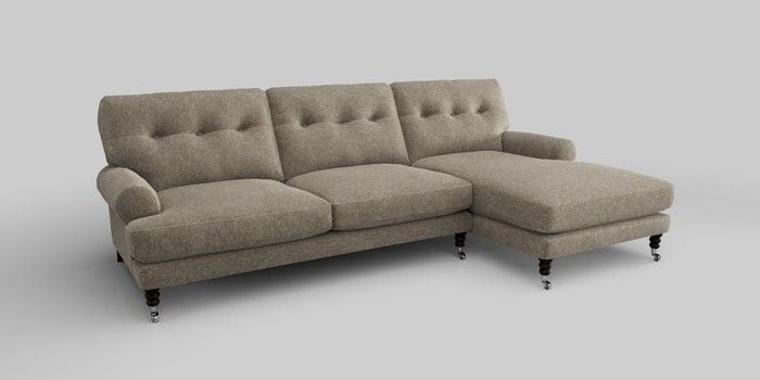 6.12.1 Buy Erin Buttoned Back Deep Relaxed Sit Medium Sofa Chaise - Right Hand Cotswold Chenille Mid Mink Brown High Classic Turned Chrome Castor - Dark from the Next UK online shop Click here to use our accessible website