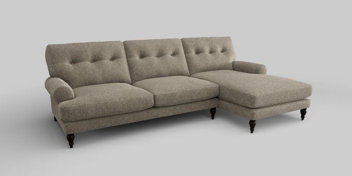 6.12.1 Buy Erin Buttoned Back Deep Relaxed Sit Medium Sofa Chaise - Right Hand Cotswold Chenille Mid Mink Brown High Classic Turned - Dark from the Next UK online shop Click here to use our accessible website