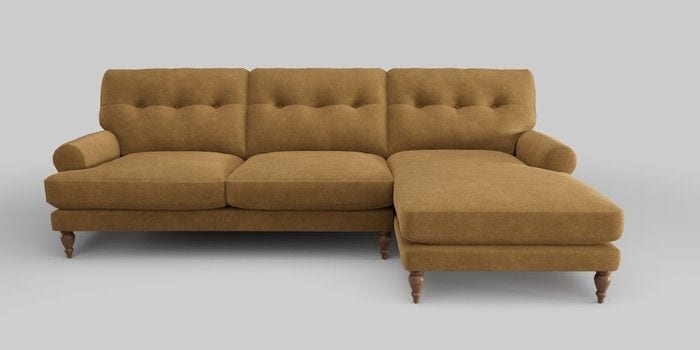 7.0.3 Buy Erin Buttoned Back Deep Relaxed Sit Medium Sofa Chaise - Right Hand Luxe Chenille Honey Yellow High Classic Turned - Mid from the Next UK online shop Click here to use our accessible website