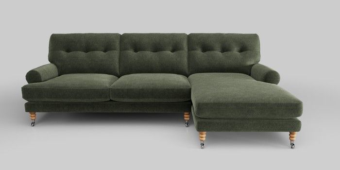 7.0.3 Buy Erin Buttoned Back Deep Relaxed Sit Medium Sofa Chaise - Right Hand Luxe Chenille Mid Green High Classic Turned Chrome Castor - Light from the Next UK online shop Click here to use our accessible website