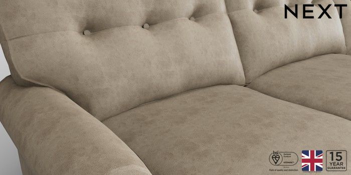 6.12.1 Buy Erin Buttoned Back Deep Relaxed Sit Medium Sofa Chaise - Right Hand Monza Faux Leather Easy Clean Mink Brown High Classic Turned Chrome Castor - Light from the Next UK online shop Click here to use our accessible website