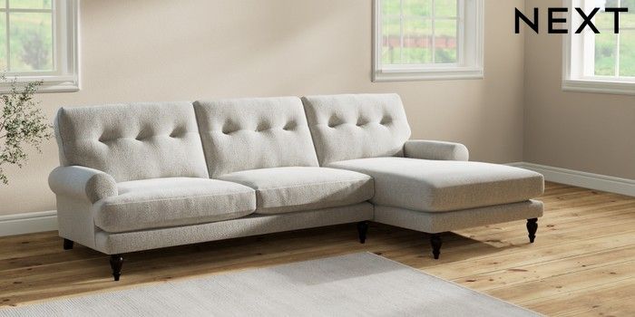 7.2.6 Buy Erin Buttoned Back Deep Relaxed Sit Medium Sofa Chaise - Right Hand Multi Weave Light Blue High Classic Turned - Dark from the Next UK online shop Click here to use our accessible website