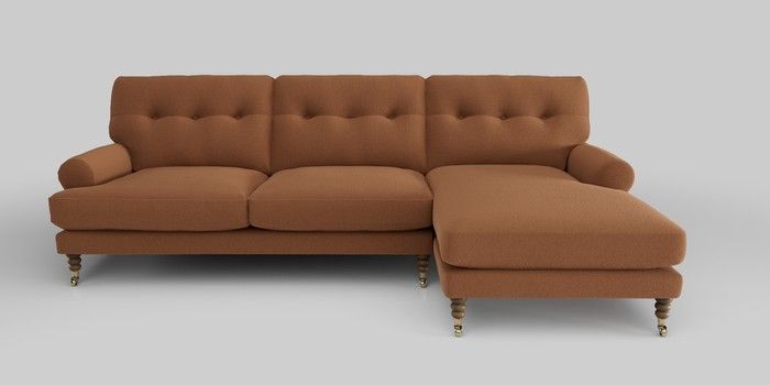 6.12.1 Buy Erin Buttoned Back Deep Relaxed Sit Medium Sofa Chaise - Right Hand Ripple Chenille Mid Rust Brown High Classic Turned Brass Castor - Dark from the Next UK online shop Click here to use our accessible website