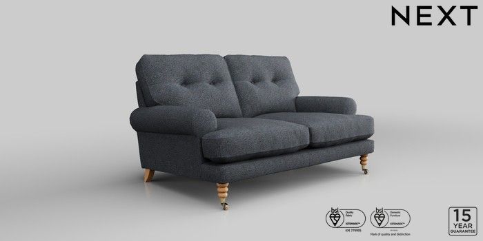 6.12.1 Buy Erin Buttoned Back Deep Relaxed Sit Extra Large Footstool Tweedy Chenille Navy Blue High Classic Turned Brass Castor - Light from the Next UK online shop Click here to use our accessible website