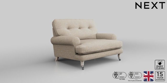 Add charm to your living space with the Erin Button Back Sofa. Its elegant scroll arms and classic button-back cushions create a timeless look. You'll love its "Relaxed Sit" cushions, specially designed for ultimate comfort. These cushions are made with clever foam and fibre, giving you a wonderfully soft, plump feel. To keep them looking their best, simply plump and turn them regularly. Plus, you can make the Erin your own by choosing from a huge range of coloured fabrics.