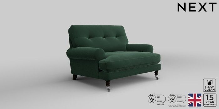 6.12.1 Buy Erin Buttoned Back Deep Relaxed Sit Snuggle Plush Velvet Easy Clean Bottle Green High Classic Turned Chrome Castor - Dark from the Next UK online shop Click here to use our accessible website