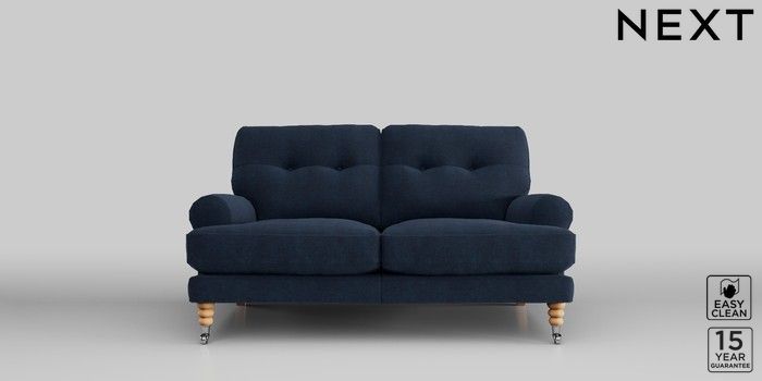 6.11.8 Buy Erin Buttoned Back Deep Sit 2 Seater Small Sofa Fine Chenille Easy Clean Dark Navy Blue High Classic Turned Chrome Castor - Light from the Next UK online shop Click here to use our accessible website