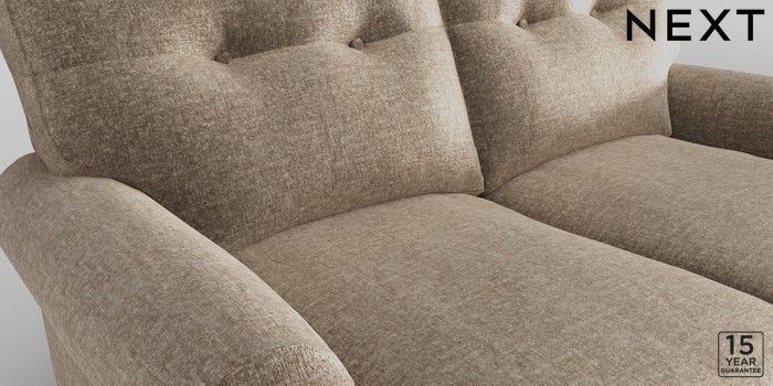 6.11.4 Buy Erin Buttoned Back Deep Sit 2 Seater Small Sofa Plush Chenille Mid Natural High Classic Turned Chrome Castor - Mid from the Next UK online shop Click here to use our accessible website