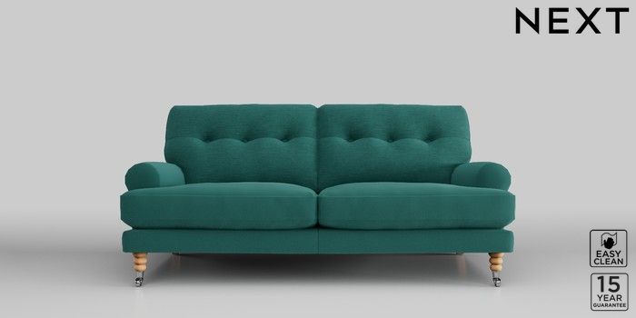 6.11.4 Buy Erin Buttoned Back Deep Sit 3 Seater Small Sofa Fine Chenille Easy Clean Dark Juniper Green High Classic Turned Chrome Castor - Light from the Next UK online shop Click here to use our accessible website